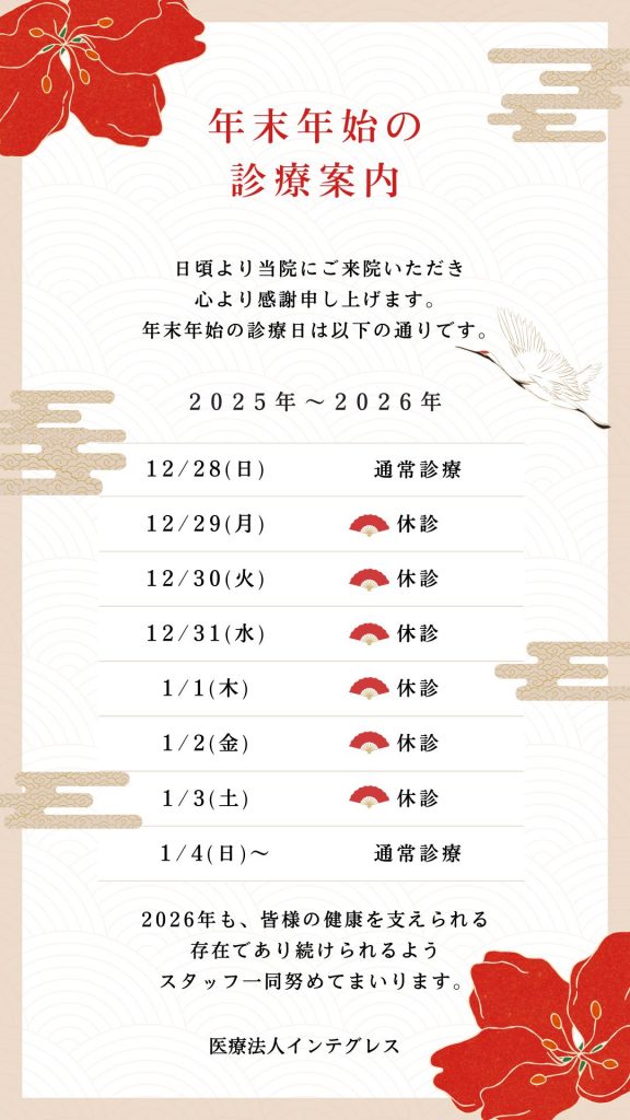 - 2025年〜2026年 年末年始の診療案内 [2025.12.23更新]